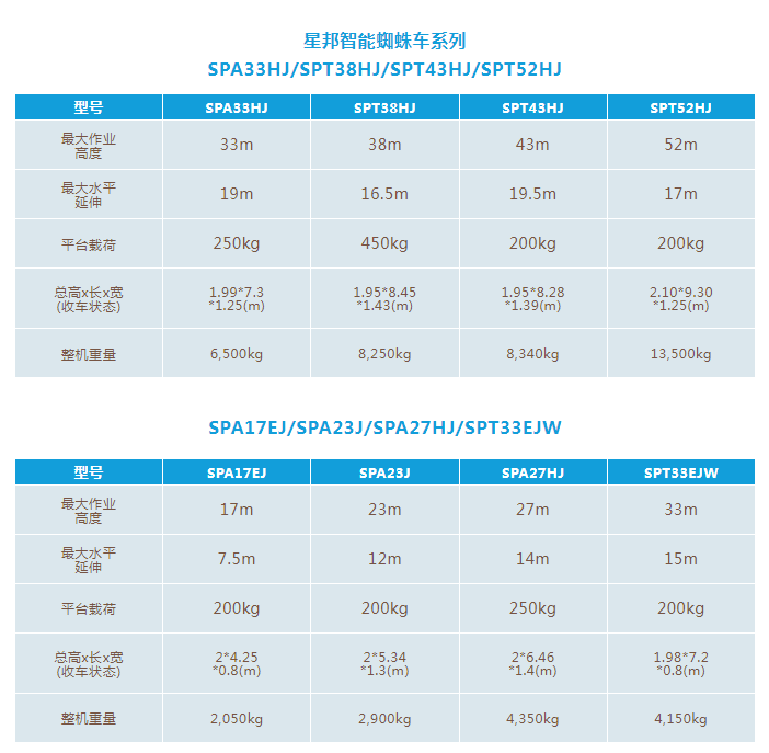 △最大水平延伸优于同级其他产品,SPA33HJ蜘蛛车水平延伸可达19米;