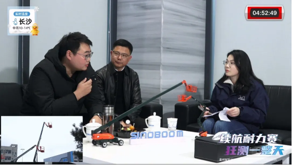 ▲特邀嘉宾-湖南租赁商莅临直播间交流臂车在实际应用工况的续航痛点和效率提升探讨