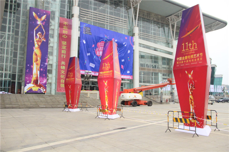 万众期盼的第11届金鹰电视艺术节将于2016年10月14日晚在长沙开启大幕。湖南广电集团也在紧锣密鼓的参与节目前的准备工作。星邦重工的直臂式高空作业平台这次又荣幸得参与了服务工作,主要参与场馆外围广告牌搭建与维护。让我们一睹金鹰电视艺术节搭建现场!