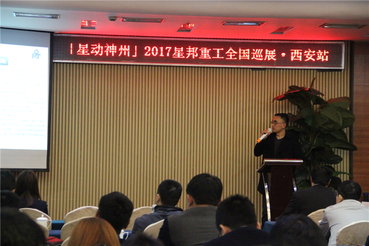 3月31日,湖南星邦重工有限公司 “星动·神州” 2017年全国巡展西安站在西安大秦温泉养生苑阿房宫会议厅如期举行。