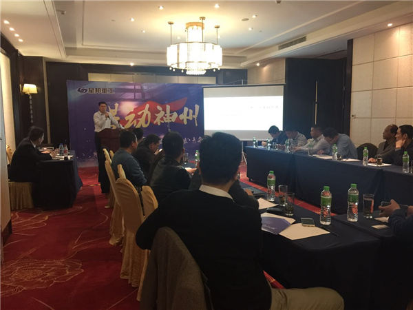 星邦重工营销总监 营销公司总经理葛庆先生带来星邦十周年纪念版设备和十周年促销政策,客户饶有兴致关注