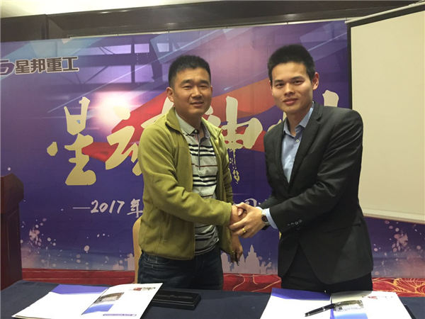 星邦臂式高空车引爆现场,客户签订五百万订单 会议期间,客户对高空作业平台租赁行业的发展趋势愈能把控,同时对国产臂式高空车知名品牌—星邦重工的了解愈加深入。基于对星邦的信赖和对行业的肯定,山东华速昌达的苏总现场向星邦订购一批价值五百万元的臂式设备和十周年纪念版设备。