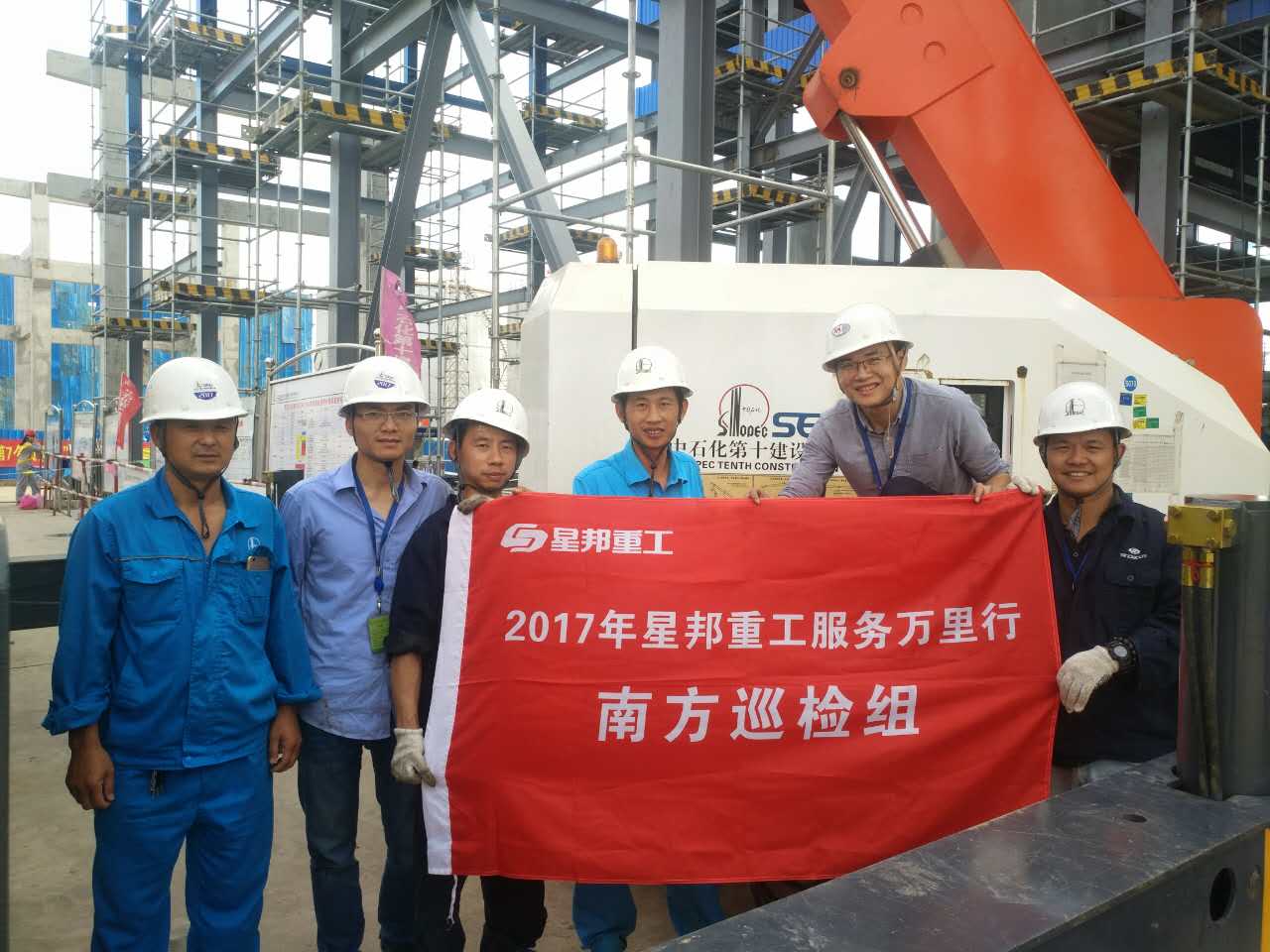 2017年星邦重工服务万里行自5月6日正式拉开序幕,南方巡检组第一站到达广东茂名,为中石化第十建设有限公司的五台星邦设备进行“全面体检”: