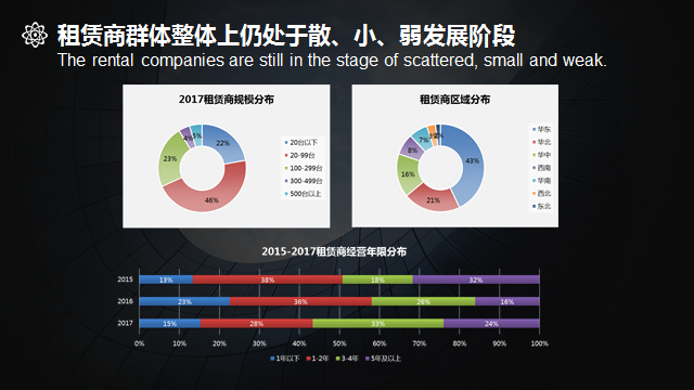 据估算,2017年总数在 550 家左右 ,租赁商群体整体上仍处于散、小、弱发展阶段