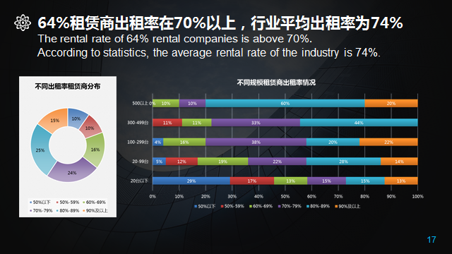 64%租赁商出租率在70%以上,行业平均出租率为74%;