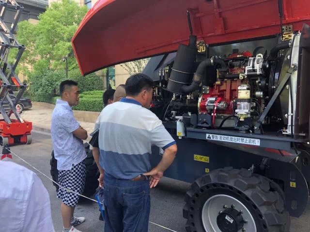 星邦重工的产品展现在济南的蓝天白云下,与会来宾兴致勃勃地体验高品质设备的易操作性和高效性。