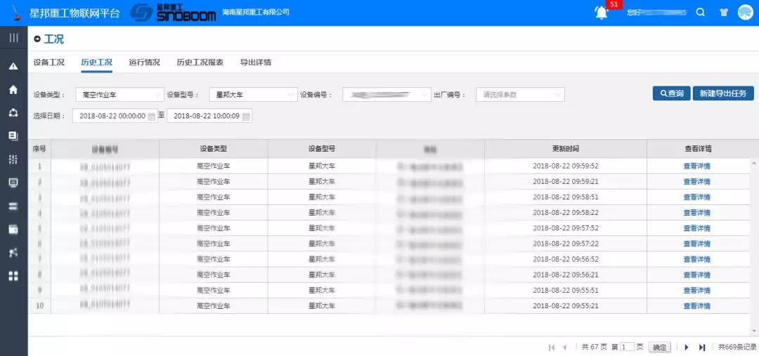 • 实时和历史工况查看、作业情况统计