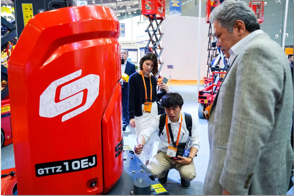 电驱新品GTJZ1414是国内租赁商客户较为关注的新品,较常规产品更具静音节能、续航时间长、爬坡能力强等优势,可为用户带来全新的产品体验。现场已被多名客户预定。