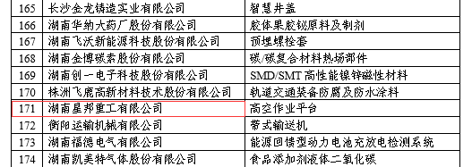 据工信部网站消息,为进一步贯彻落实中办、国办《关于促进中小企业健康发展的指导意见》提出“培育一批主营业务突出、竞争力强、成长性好的专精特新‘小巨人’企业”决策部署,推动和提升中小企业专业化能力和水平,根据《工业和信息化部办公厅关于开展专精特新“小巨人”企业培育工作的通知》(工信厅企业函〔2018〕381号)要求,经各省级中小企业主管部门推荐、行业协会限定性条件论证、专家组审核,第一批248家专精特新“小巨人”企业名单公示。其中湖南星邦重工有限公司成功入选。