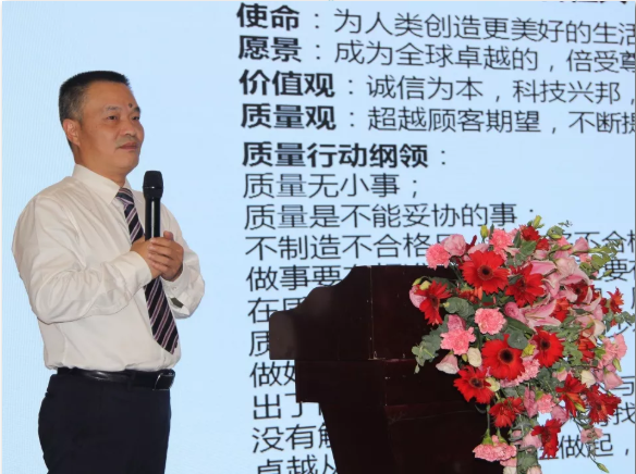 质量部部长熊亚军以品质为先、合作共赢”为主题对供应商质量文化进行了宣讲。