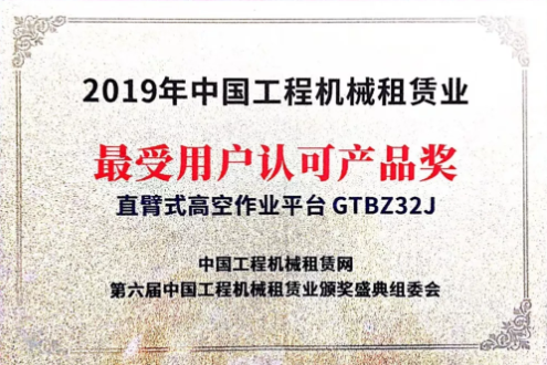 2019年11月27日-28日,中国工程机械协会租赁分会年会在南京盛大召开。星邦重工直臂式高空作业平台GTBZ32J荣获最受用户认可产品奖。这是GTBZ32J自9月份荣获年度高空作业产品奖后,囊括的又一项大奖!
