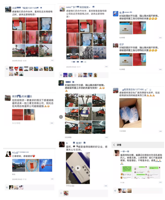 与此同时,此次活动也收到了来自高空人的热情反馈,《星邦向全国高空人免费提供10万只医疗口罩,需者速来申领!》一文阅读破万,累计收到125条留言;朋友圈、各大行业群皆可看到各大公司的反馈信息。
