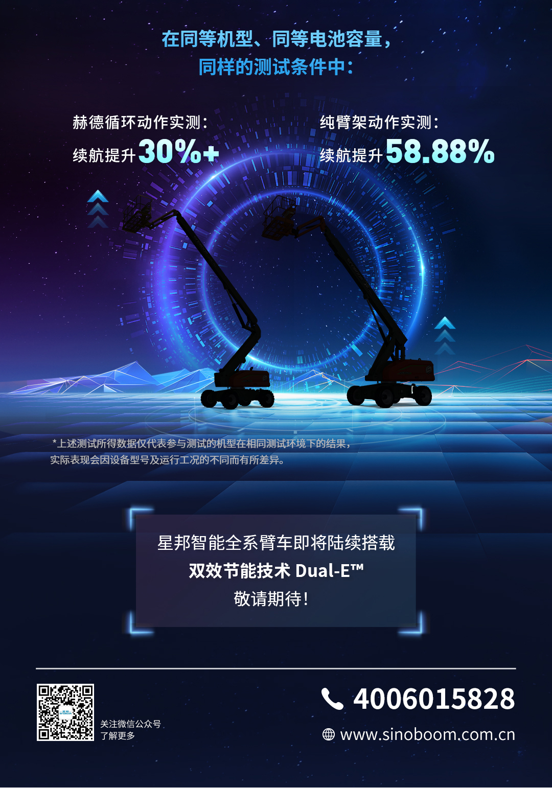 同样是电动臂车,为什么星邦能多干30%?Dual-E™双效节能详解来了