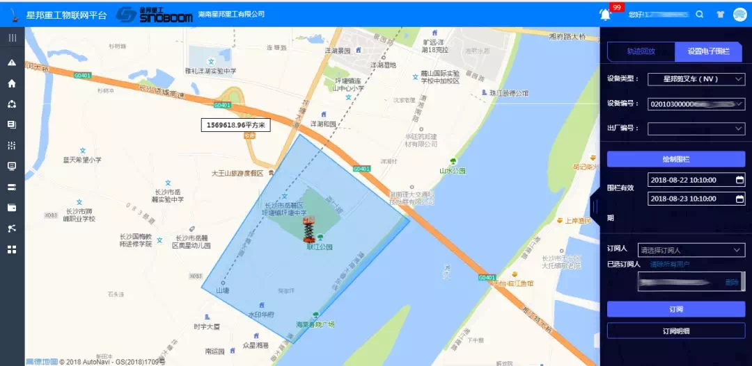 电子围栏——根据作业工期标定设备运行区域范围,超出范围立即短信提示指定人员。